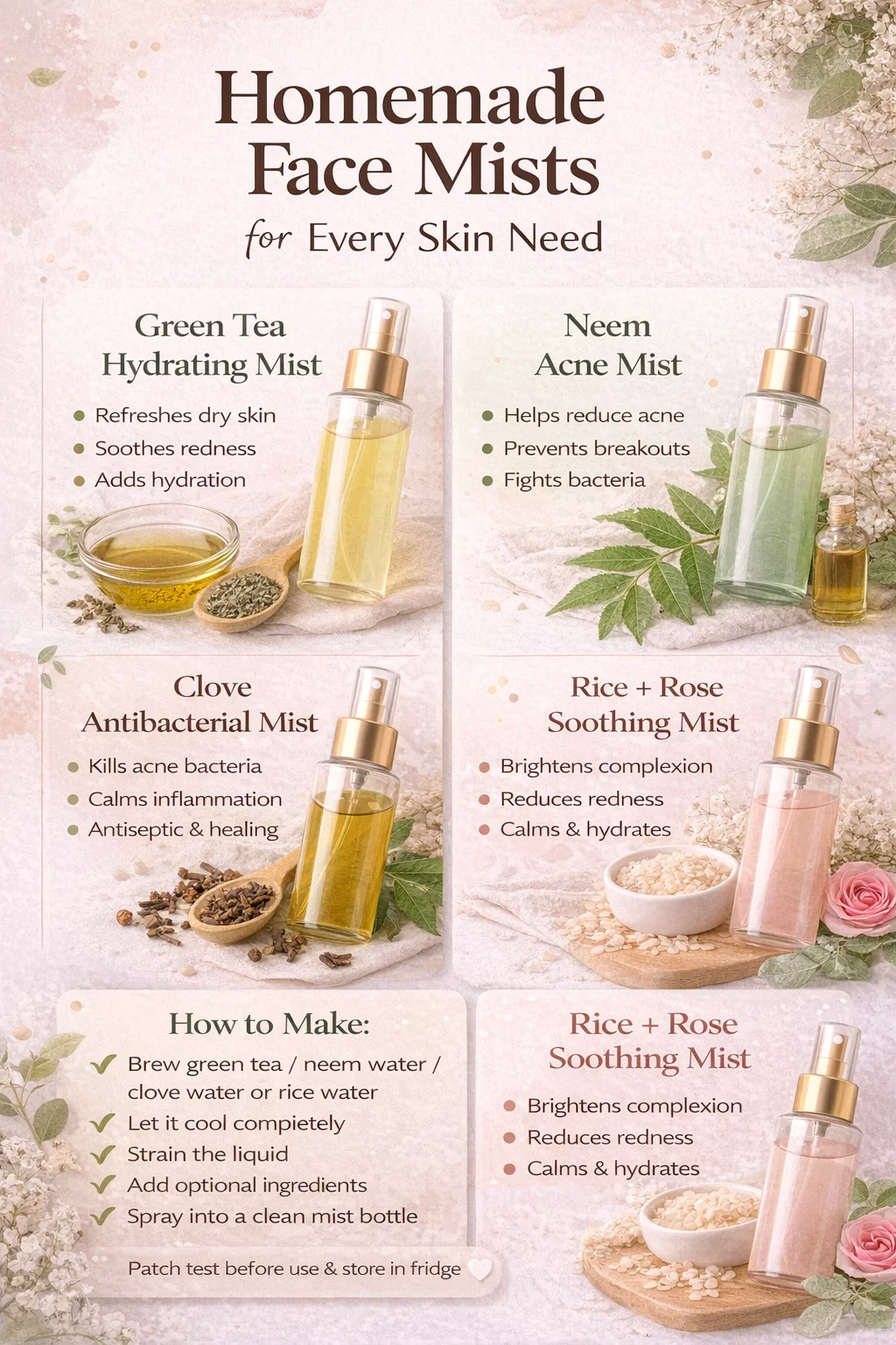 4 Natural DIY Face Mists for Acne, Hydration Glowing Skin Homemade Skincare Guide