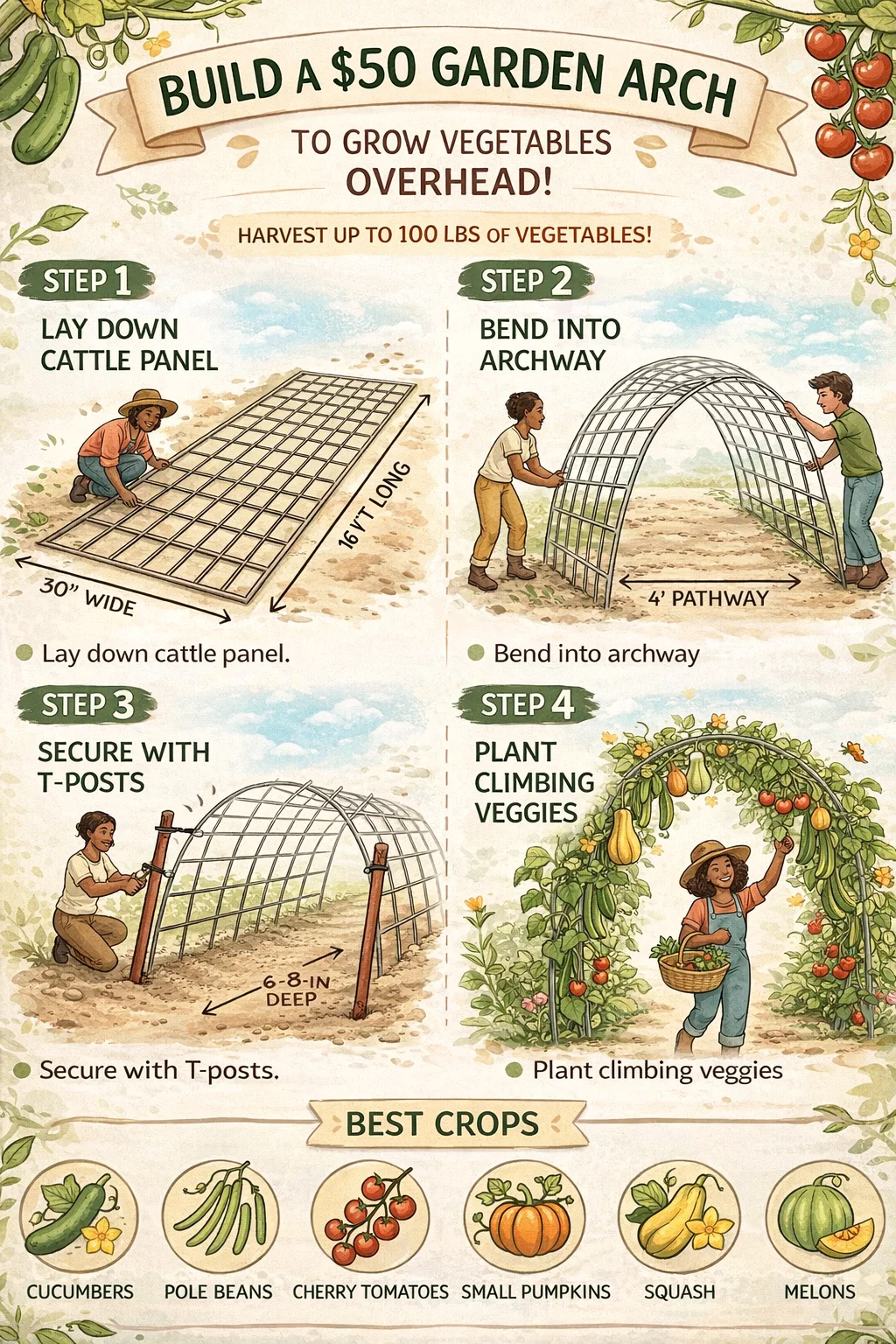 Build a DIY 50 Garden Arch Easy 4-Step Cattle Panel Trellis for Vertical Veggies