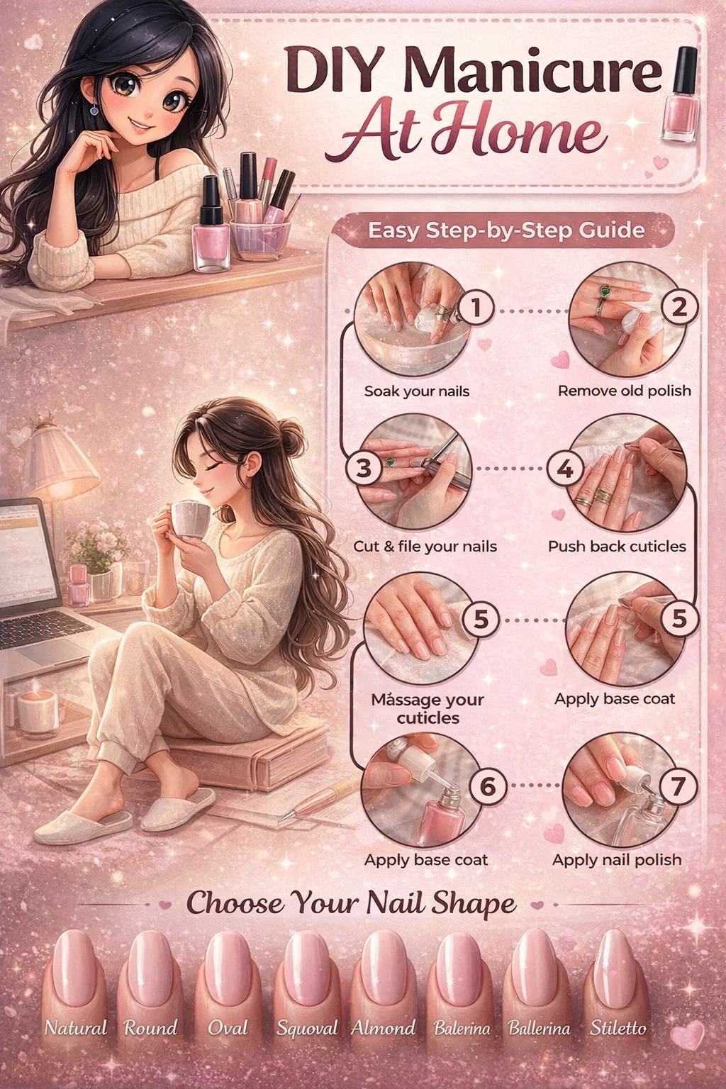 DIY Manicure at Home Guide Step-by-Step Nail Care Popular Nail Shapes Checklist