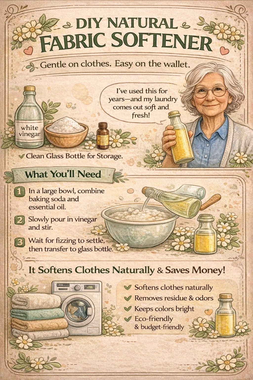 Discovering the secret to perfectly soft, fresh-smelling laundry does not require a trip to the chemical aisle of your local supermarket. In fact, the most effective solution might already be sitting in your pantry. If you are tired of the overpowering artificial scents and the waxy buildup left behind by commercial liquid softeners, it is time to embrace a more natural approach. This DIY natural fabric softener recipe, passed down through generations, combines the cleaning power of white vinegar with the softening properties of baking soda to give you salon-quality laundry results at a fraction of the cost.