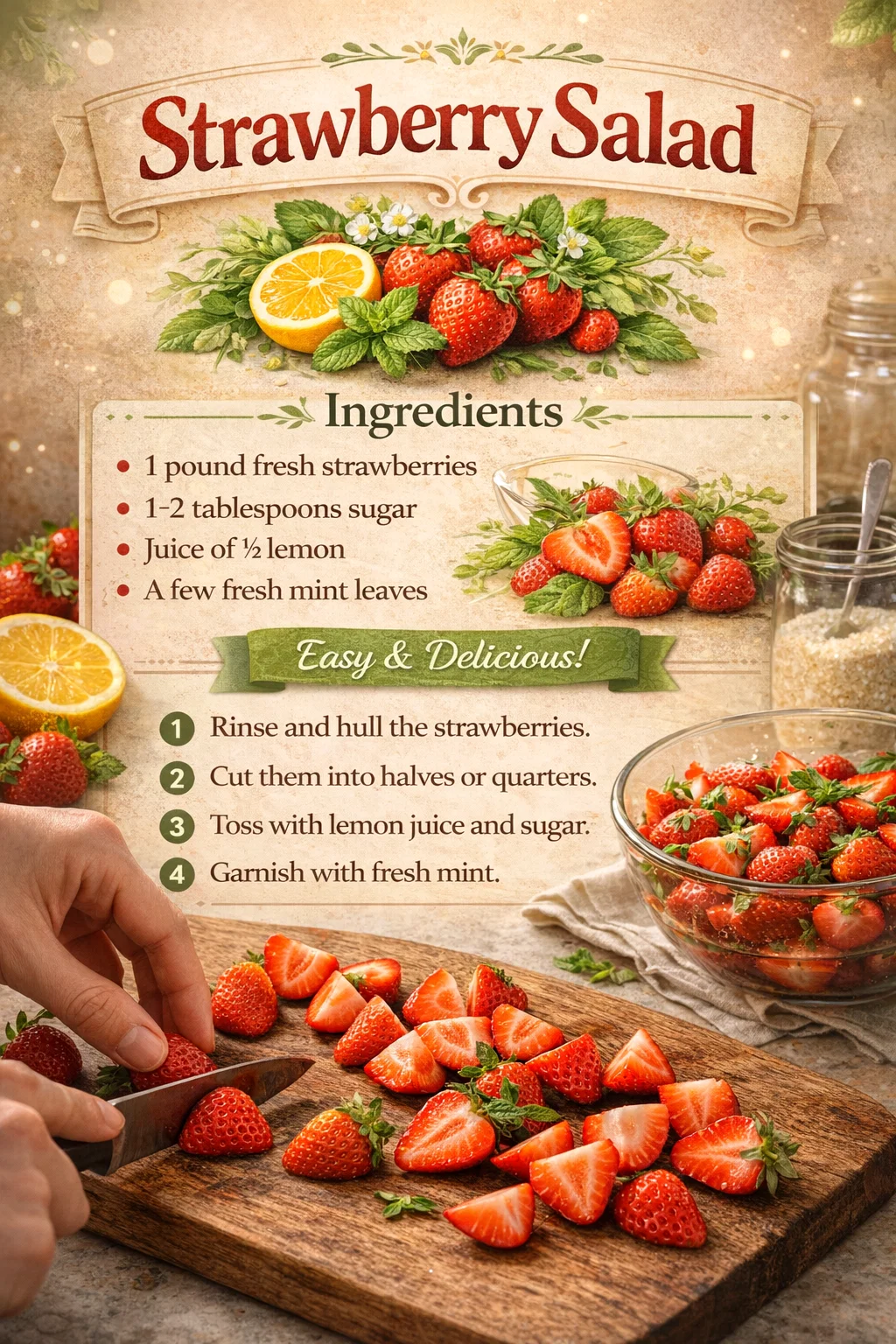 Easy Fresh Strawberry Salad Recipe with Lemon and Mint Simple Summer Dessert Recipe