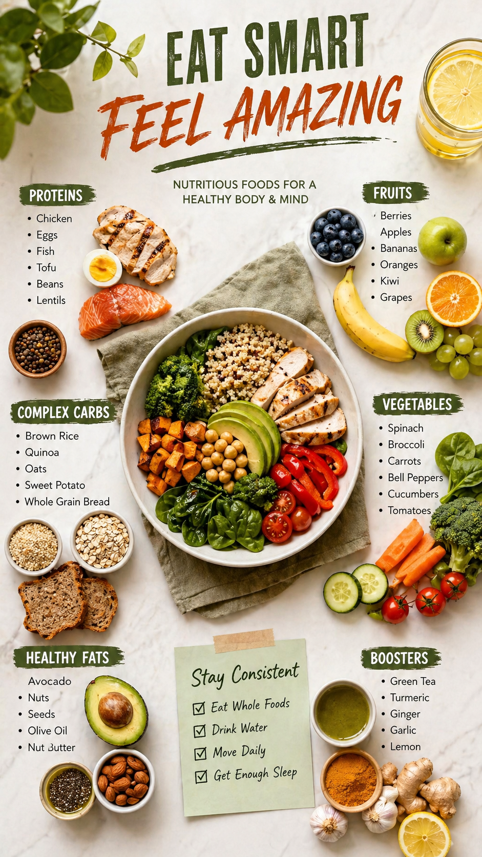 • Stay consistent with your choices and drink plenty of water for optimal results.